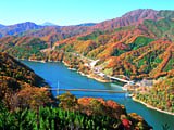 ダムの建設によってできた人造湖で、瀬戸大橋の試作として「夢の掛け橋」がかかっています。