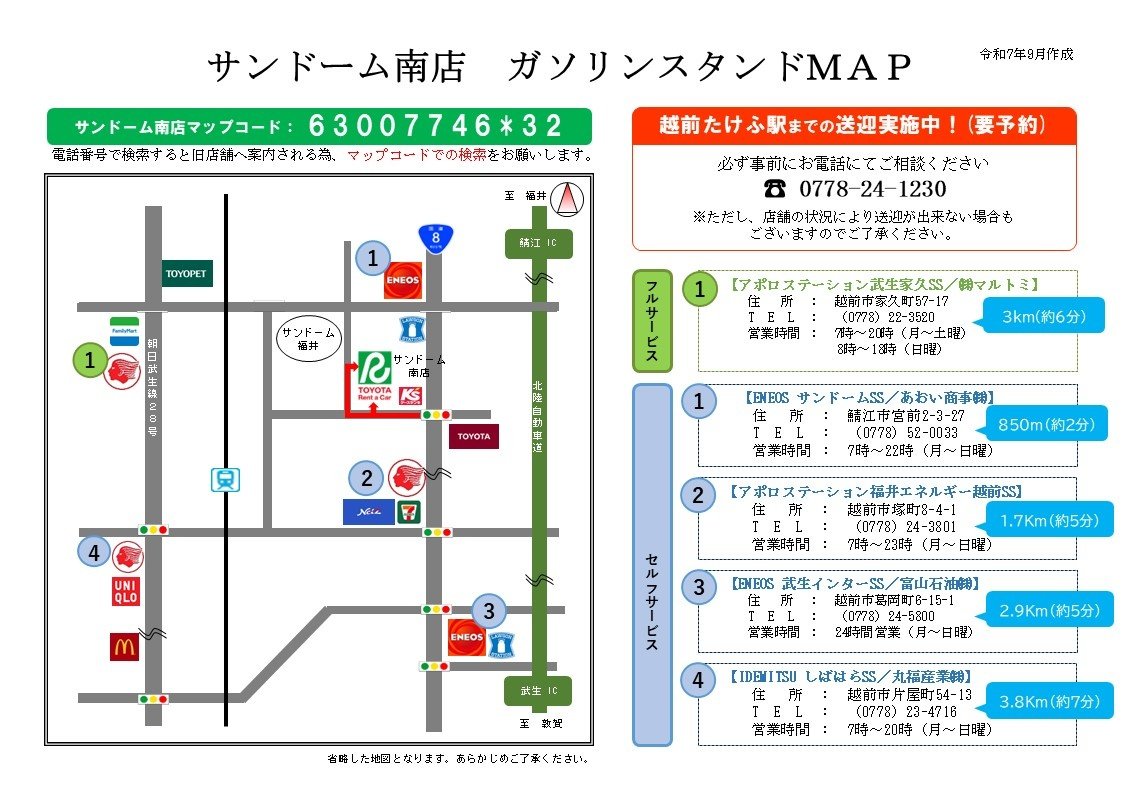 | <セルフサービス2> アポロステーション福井エネルギー越前SS TEL:(0778)24-3801 | ||||||