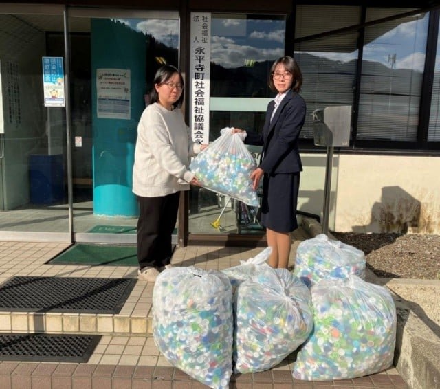 「エコキャップ運動」を福井県民に推奨している 社会福祉法人 永平寺町社会福祉協議会様に45Lゴミ袋6袋分のエコキャップをお持ちしました。